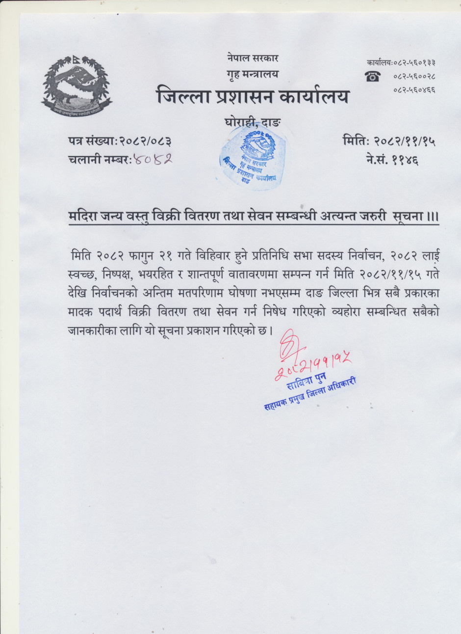 © सर्वाधिकार सुरक्षित जिल्ला प्रशासन कार्यालय, दाङ्ग